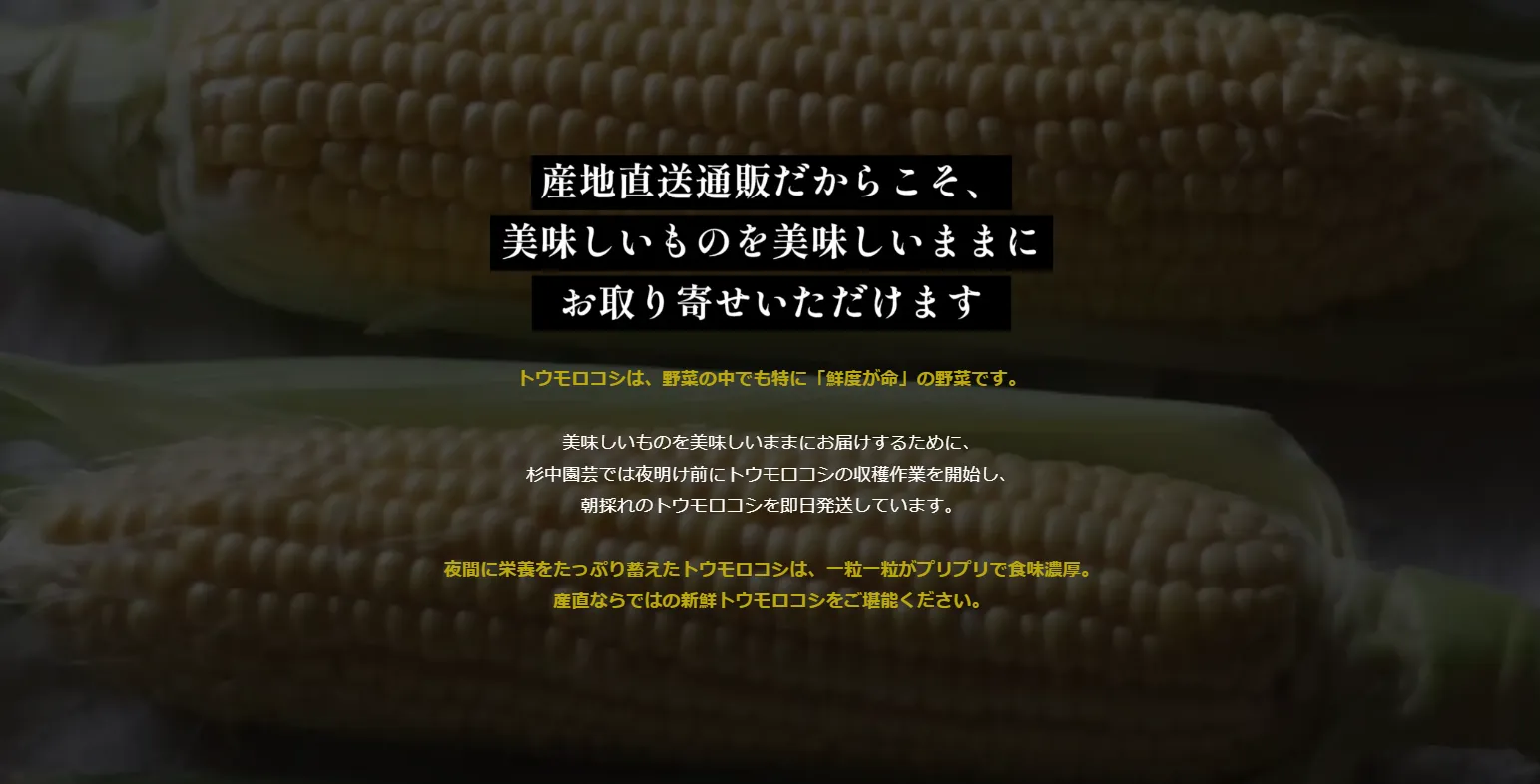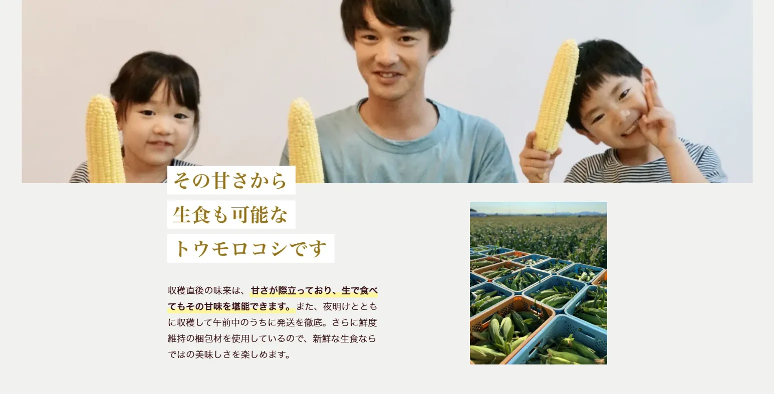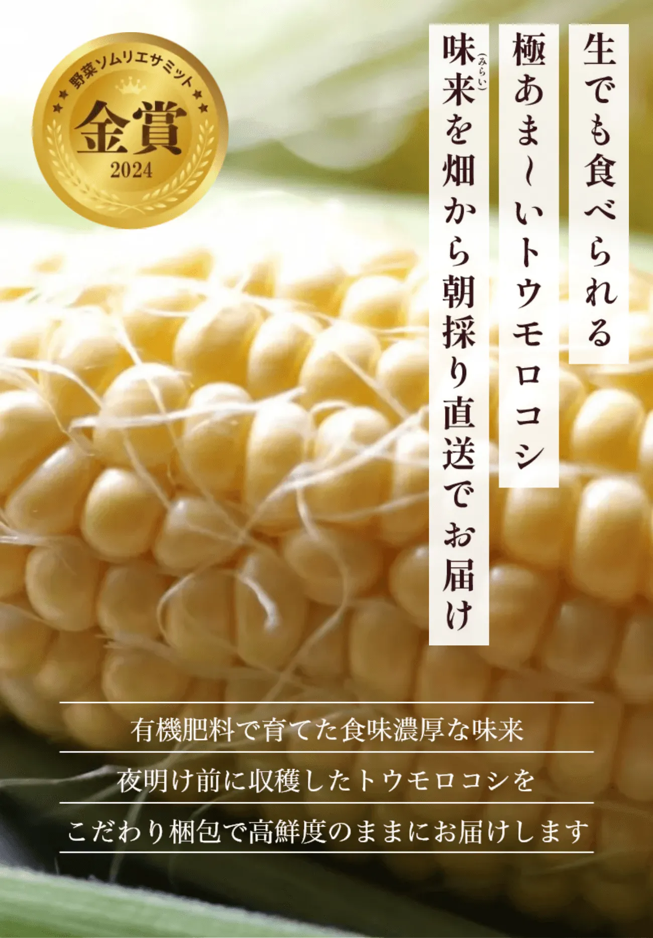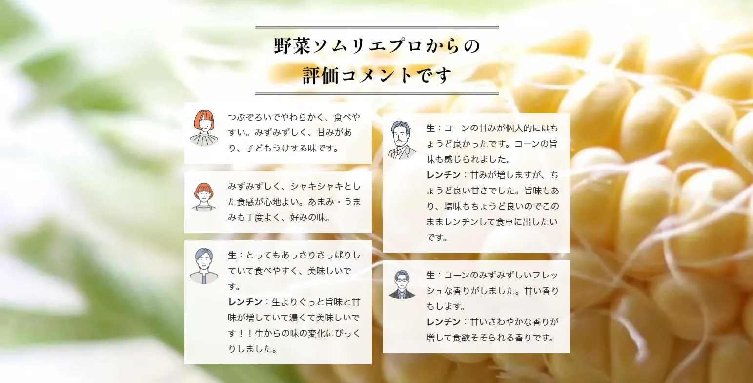 トウモロコシの純粋な旨味に、フルーツのような甘さが特徴です。
