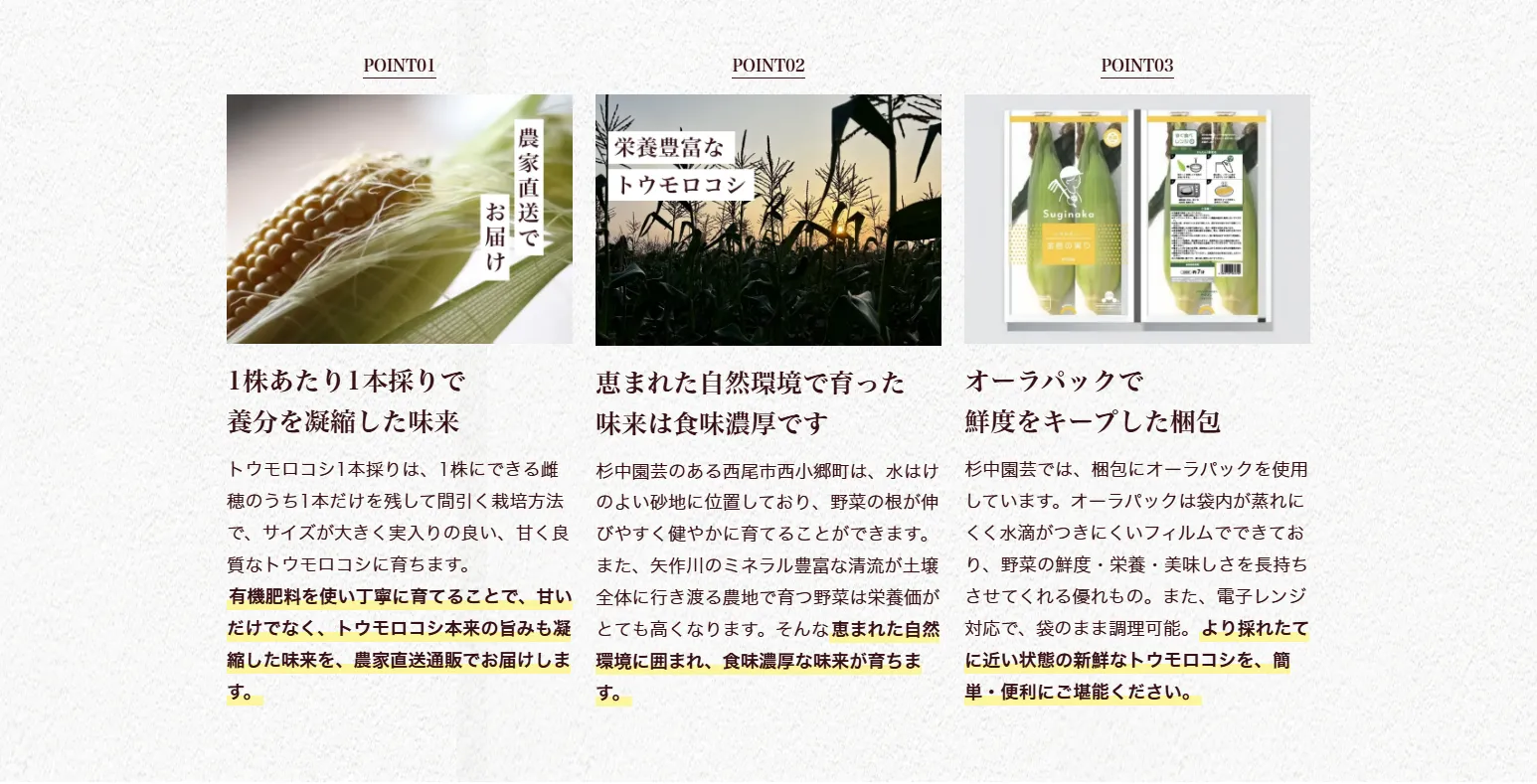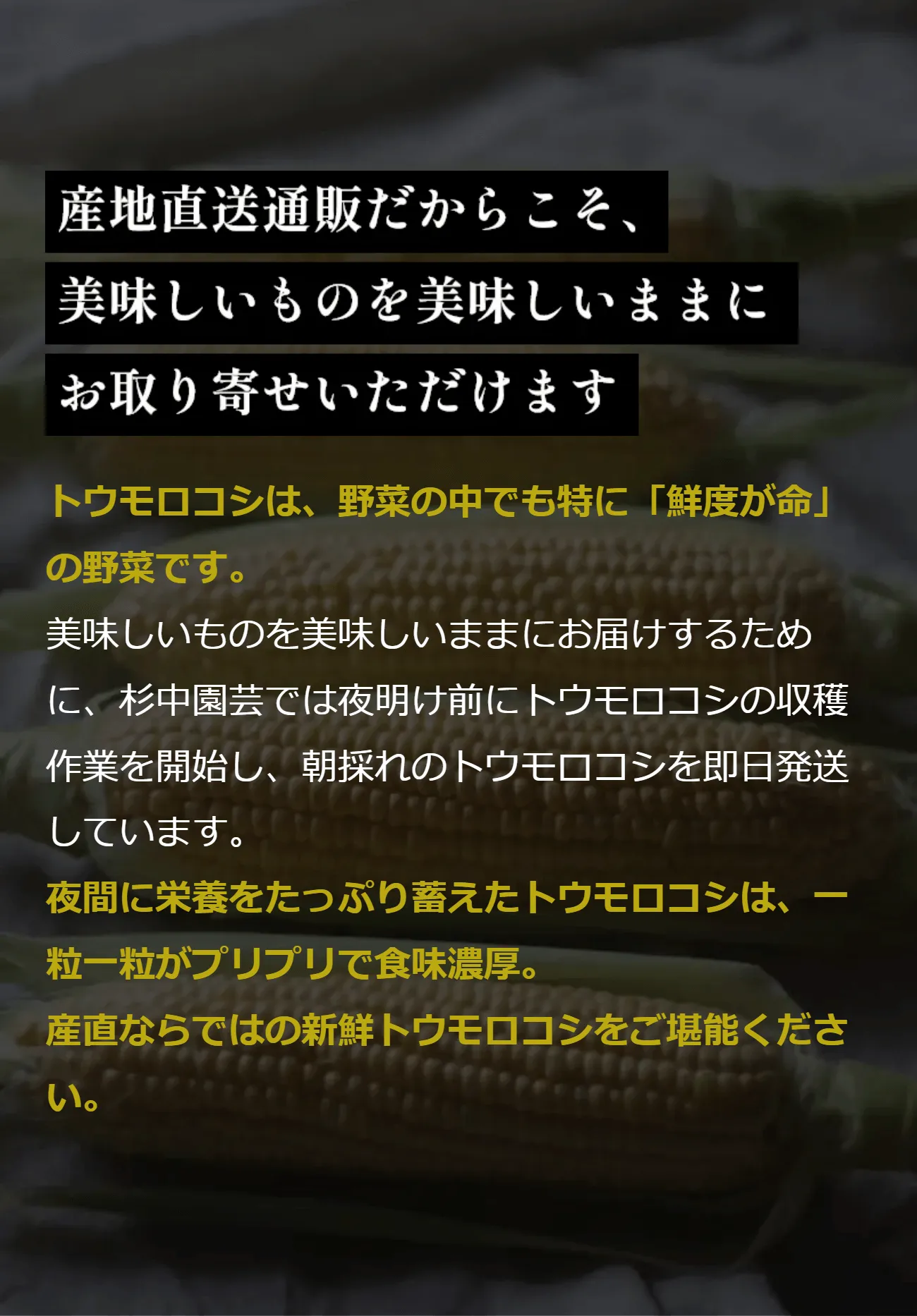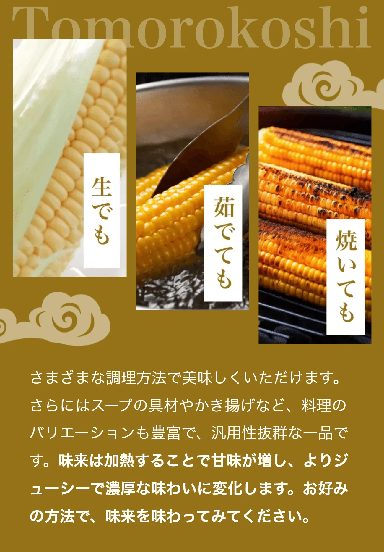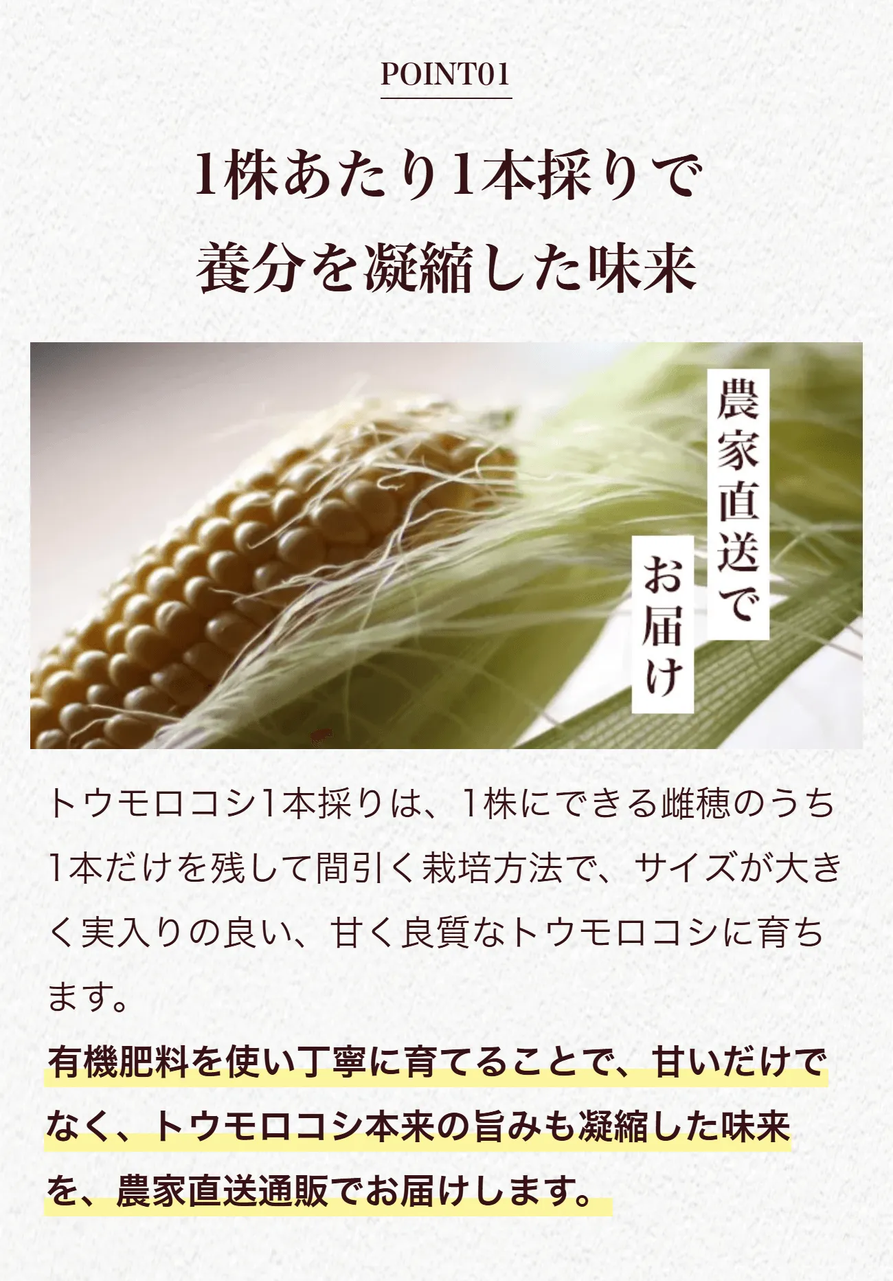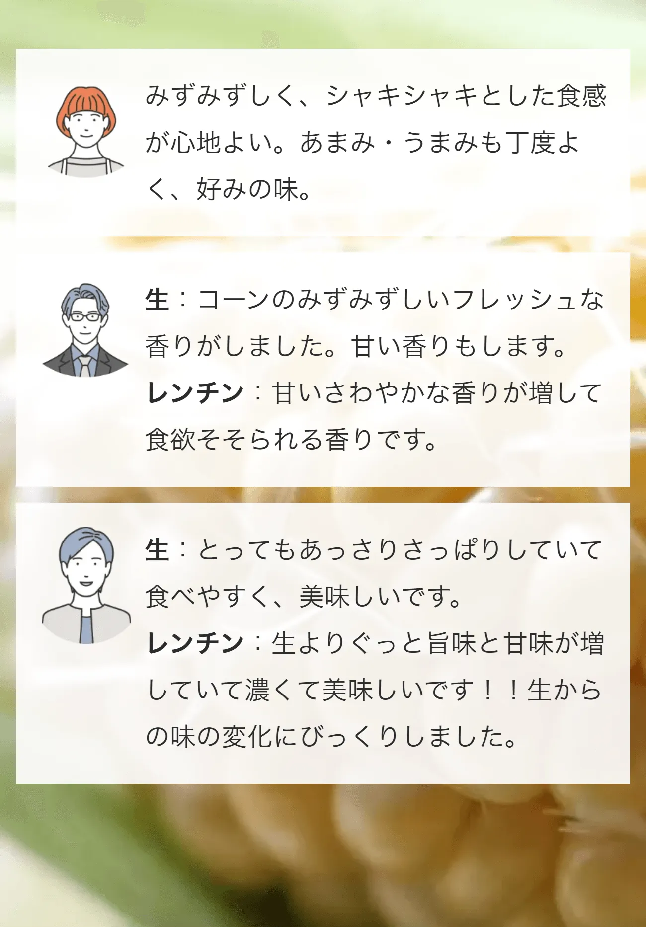 トウモロコシの純粋な旨味に、フルーツのような甘さが特徴です。