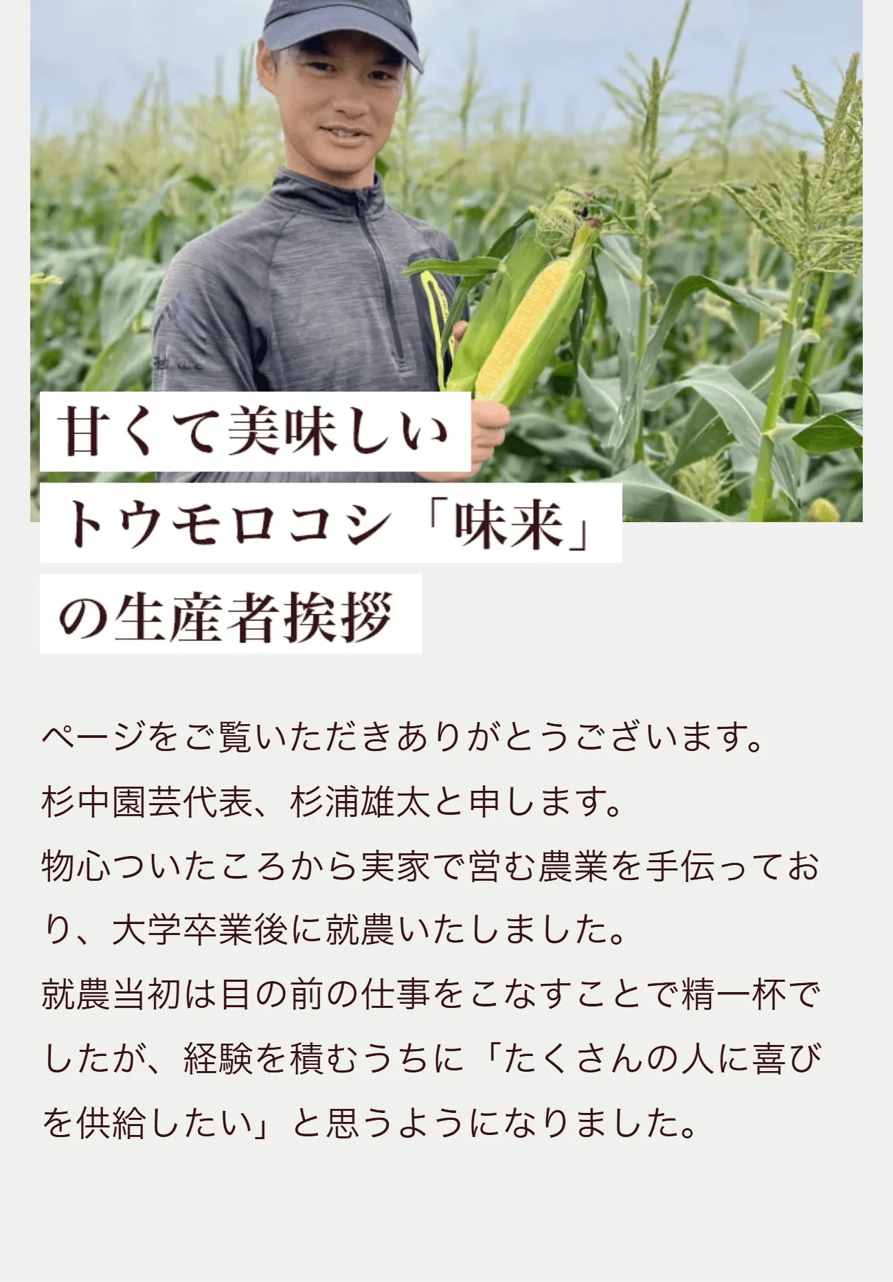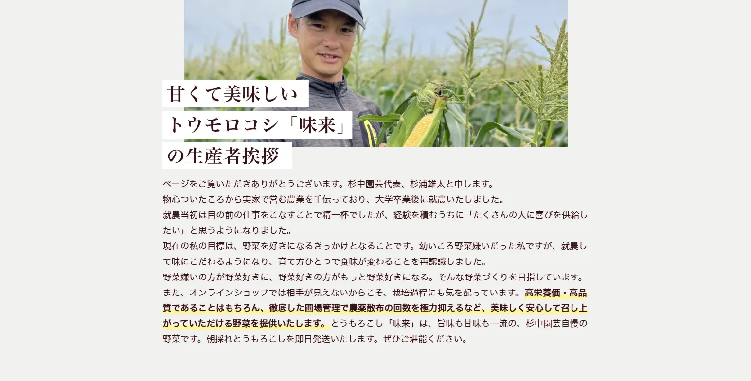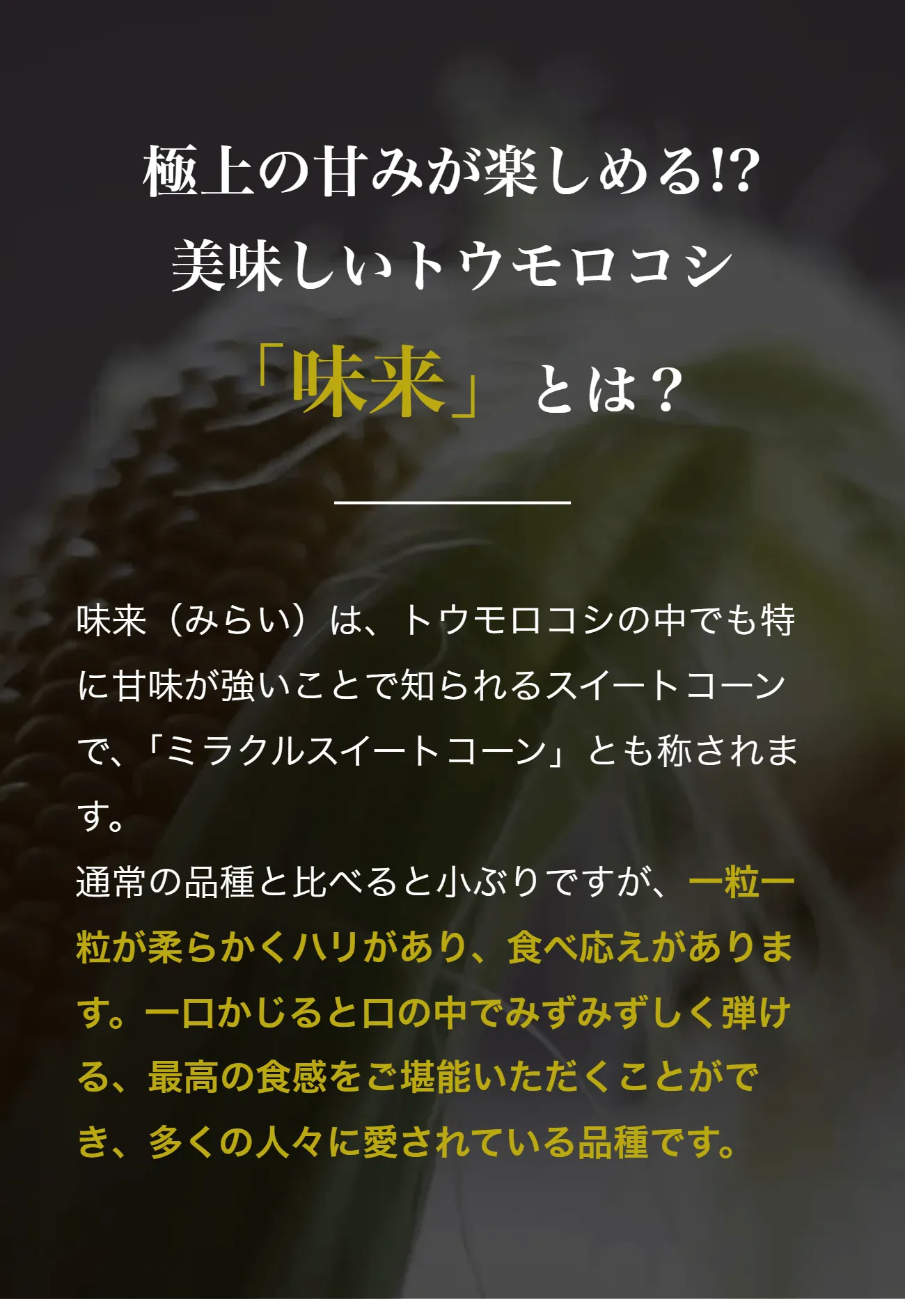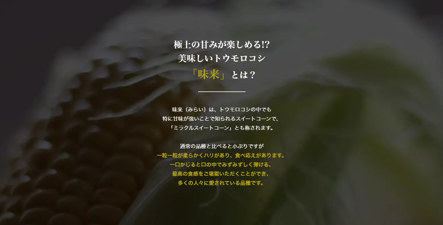 トウモロコシのプレミアム品種「味来」。