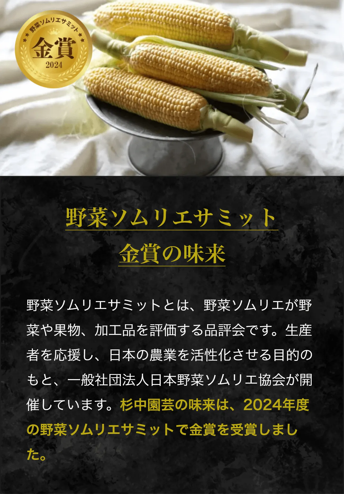 2024年度の野菜ソムリエサミットで金賞を受賞しました。